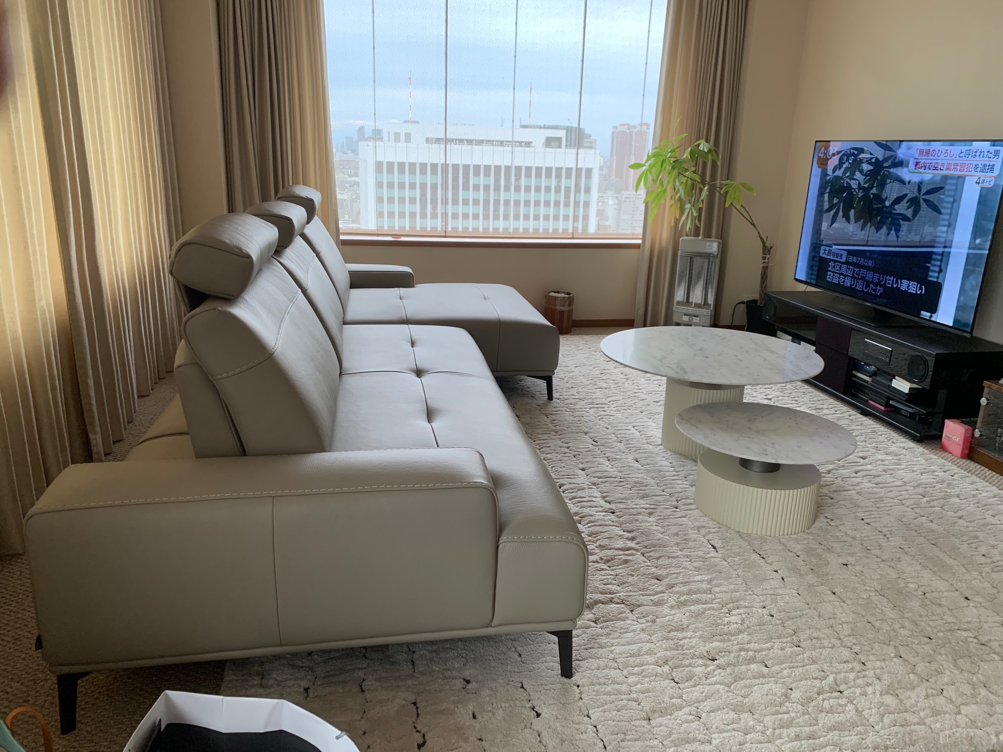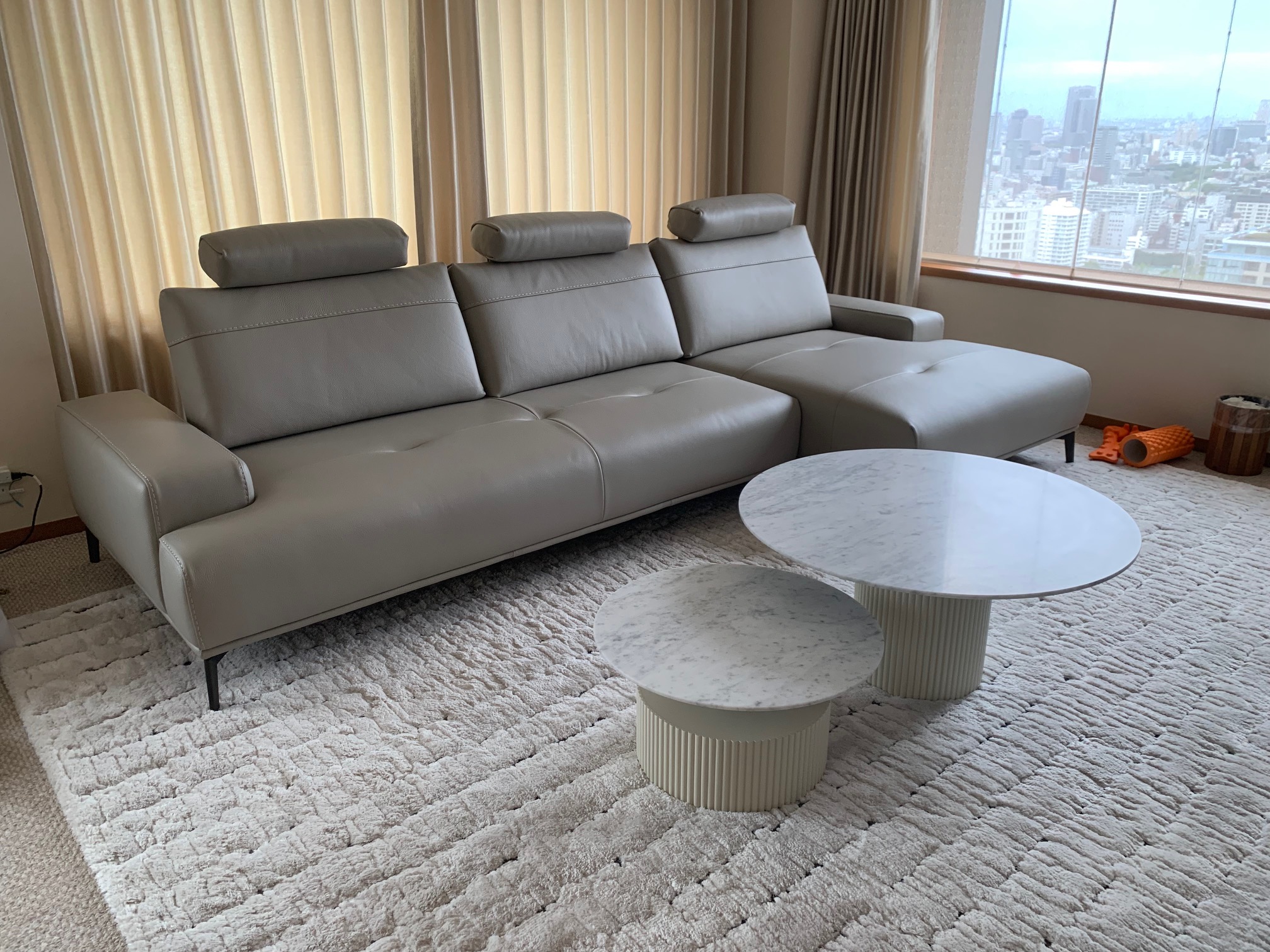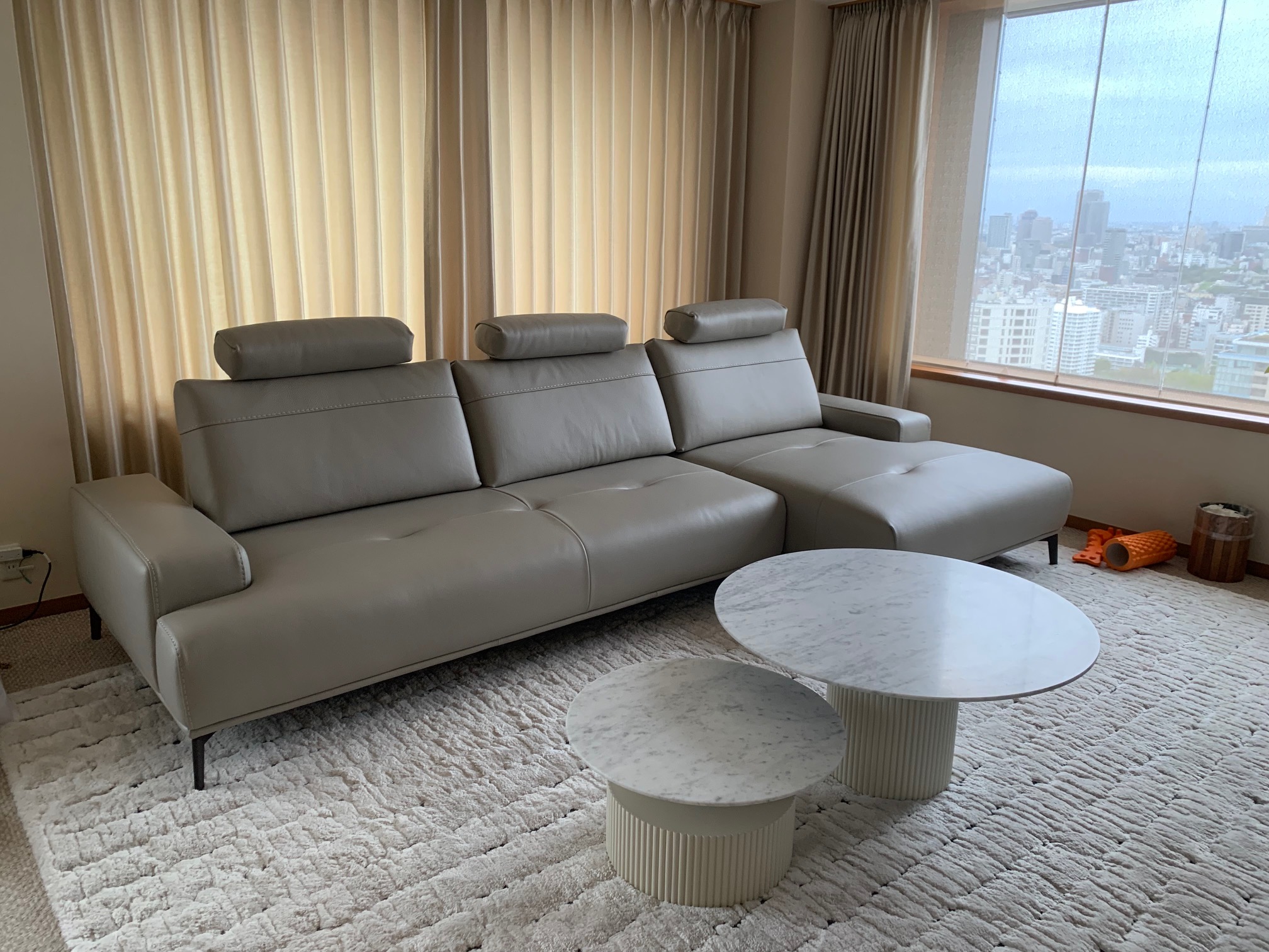 サイズ、組み合わせ、素材(レザーかファブリックか)、お色などなどお好みに合ったソファを現地本社工場でお作りし設置いたします。